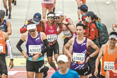 沖過終點后,廣馬情侶秀恩愛。