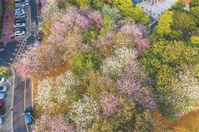 2月的羊城格外溫暖,華南農業大學內的宮粉紫荊花已經悄然綻放。粉與白的紫荊深淺交織,燦爛繁花構成一片片粉色海洋。陽光斜照,千樹萬花透著明媚的光,一派春暖花開、生機勃勃之景展現眼前。因疫情防控需要,目前華農校內仍處于封閉管理階段,只有零星賞花人駐足花下靜靜觀賞。市民不妨通過鏡頭感受這片春日花海。