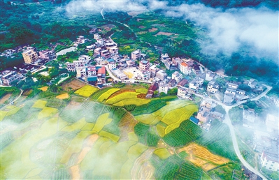 在從化區呂田鎮桂峰村,房屋鱗次櫛比,稻田層層疊疊,景色優美