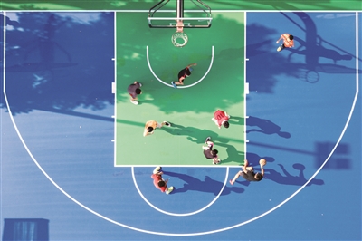 斜陽(yáng)映照下的籃球場(chǎng),一個(gè)個(gè)矯健的身影在飛躍奔馳