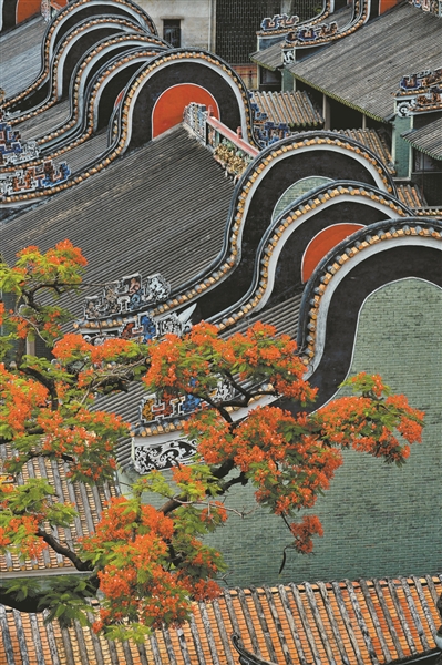尋跡于古祠堂,感慨于精益求精、美輪美奐的堂皇。木雕、磚雕、石雕、灰塑、陶塑、銅鐵鑄,窮盡建筑之手段;人物、走獸、花鳥、蟲魚、瓜果、云紋,搜羅裝飾之精品,打造一座座風(fēng)格獨特、裝飾精巧的祠堂,成為最富嶺南特色的藝術(shù)建筑群。古樸幽雅的庭院、精致巧妙的造景、精彩絕倫的雕塑,莫不讓人流連。