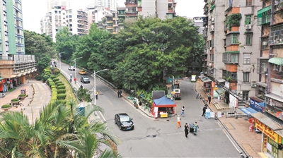 但在一年多前,這里卻是另一副樣子。華樂街道辦事處副主任曾祥永告訴記者:“過去這里是一塊邊角綠地,由于榕樹長得太大,把太陽都擋住了,下面的植物都長不好,我們就將這里圍蔽起來。久而久之,這里成了收買佬的據點,不少人在綠地里堆放垃圾,加上噪聲等問題,周邊居民也有不少投訴。”曾祥永還表示,這個三角地塊,居民非常密集,交通又復雜,過去靠近綠地這邊沒有人行道,行人亂穿馬路、共享單車亂堆放等也是管理上的難題。