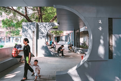 當地居民陳姨說:“想不到家門口就能見到這么富有設計感的公園,現在這里變寬敞了,休息的地方變多了。過去祠堂門口停滿了車,走路不安全。現在公園的樣貌煥然一新,每天帶孫子來玩,特別開心。”