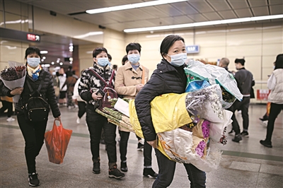 臨近過年,在地鐵站里能看到不少抱著鮮花回家的街坊。