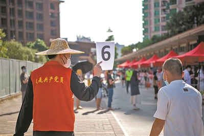 紅使命 4月8日,番禺區(qū)大石街,身穿紅馬甲的黨員協(xié)助社區(qū)開展全員核酸檢測工作。