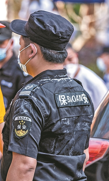 剛毅黑 4月10日,白云區(qū)管控區(qū)內(nèi)的橫滘卡口,值守保安的衣服上滲出了白色鹽跡。