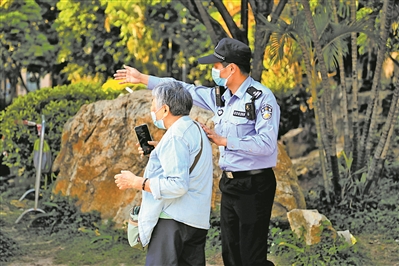 守護(hù)藍(lán) 4月10日,番禺區(qū)麗江社區(qū)核酸采樣點(diǎn),民警指引長者前往綠色通道采樣。