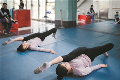 晶晶、瑩瑩是廣州市花樣游泳隊隊員。日常訓練中,姐妹倆要進行舞蹈基本功訓練。