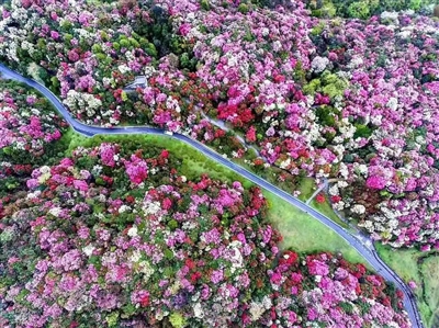 此外,總落差達40米的三疊瀑布、天生橋、花底巖等千姿百態的巖溶奇觀,以觀山、戲水、游村、探洞為一體的米底河景區,集花卉觀光采摘、產品加工、育苗科普、釀酒體驗為一體的花田酒肆景區,以紫薇奇觀為主題的千年紫薇王景區等景區景點形成了多樣化的旅游體驗,令“杜鵑王國”的體驗更加多元化。花間阡陌,詩意畫卷在此展開……