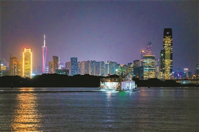 華燈初上,渡船駛離魚珠碼頭。遠(yuǎn)處的廣州塔、琶洲互聯(lián)網(wǎng)創(chuàng)新集聚區(qū)的高樓高聳林立,一幅壯美的城市畫卷展現(xiàn)在眼前。