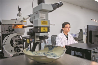 “我主要從事的是無機質文物保護修復工作,當年高中畢業后去烏克蘭國立藝術與建筑大學留學,學的是雕塑與文物保護修復專業,主要學習陶瓷器、青銅器修復,也有雕塑、水彩、油畫等課程。” 廣東省博物館文物保護科技中心修復師申翔鵬說,無機質文物主要包括陶器、瓷器、青銅器、玉器等。“我手上的陶片就屬于無機質文物,現在進行的步驟是清理。”
