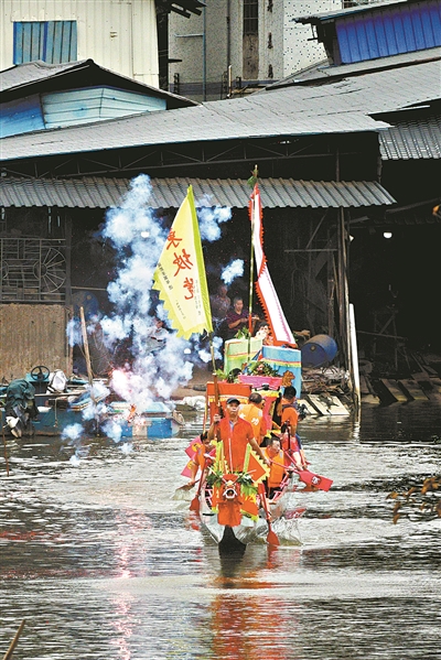 5月14日,新“東坡號”龍舟駿水并回村游龍。