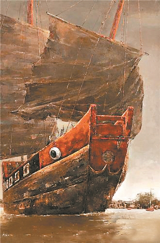 《清代 樟林港的紅頭船》 馮少協 油畫作品