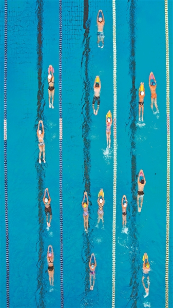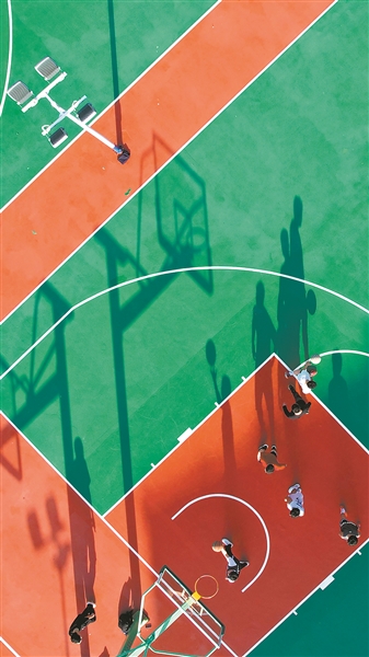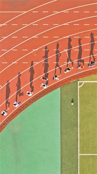 盛夏,永不靜止。籃球在空中劃出優美的弧度,擊碎泳池碧波濺起雪白的浪,赤紅跑道上的人狀若離弦之箭。在烈日的炙烤下,航拍的鏡頭隨著蒸騰的暑氣升到城市上空,就會發現一場光和影的游戲:當光線投射在運動場里,人和影子就形成了精巧的角度。隨著太陽升落的推移,運動者的影子也仿佛生動起來。夏天,就是運動的季節。