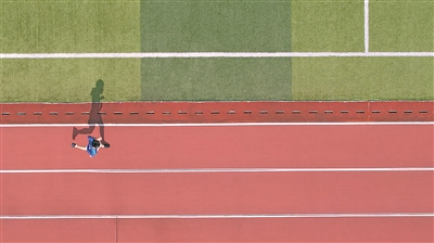 廣州市東山體育場跑道上,烈日下的跑者堅定地邁出步伐。