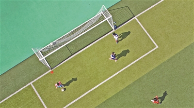 在墨綠色的足球場上,清新的草木香蔓延全場,教練有條不紊地吹著口哨,指導著學員們進行反復的技術練習。斜陽下的剪影躍動,他們的身影伴隨著時間由短變長。紅綠相間的籃球場上,大學生們互相傳球,青春的激情肆意揮灑,這是屬于年輕人的、“停唔住”的夏天——附近傳來的知了聲也如同變奏曲般,伴隨著大家的歡呼聲時起時落。