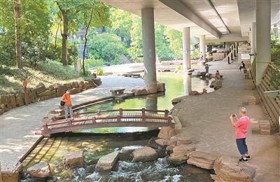 “河水清了、空氣好了,清水綠岸還給了百姓,我們生活在附近的居民真的非常開心。”回顧著東濠涌近10年的點滴變化,街坊李伯說出了東濠涌附近街坊們的心聲。東濠涌,這條廣州曾經的城東護城河,仿佛一條綠脈,在老城心臟地帶跳動出勃勃生機。落日時分,可以站在東濠涌邊看水面波光粼粼,樹枝搖曳;日出光景,能欣賞偶爾掠過河面的飛鳥和水中自在游弋的魚兒;帶狀公園、疊水瀑布、親水平臺……旖旎的風光,讓老街坊家門口多了休憩、游玩的好去處。