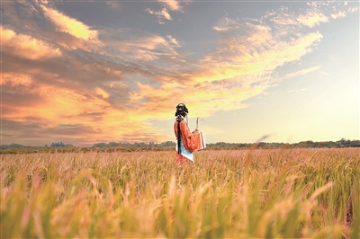 成熟后顆粒飽滿的水稻成為金燦燦的風景