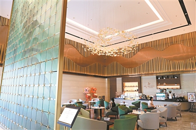 走進廣州賓館大堂,迎面一幅兩層樓高的半透明落地玻璃墻宛若搖曳的波紋,碧綠靈動,就像從江邊引入一汪活水