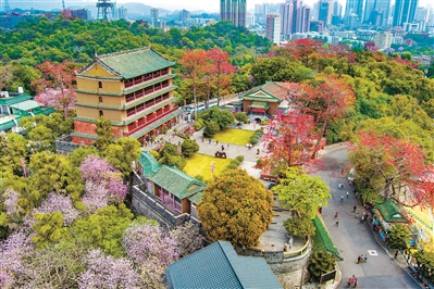 “珠江河畔千花發,越秀山前萬木春”。初春的紅棉、暮春的杜鵑,四月的白玉蘭,五月的金鳳,秋天的含笑,冬季的蠟梅,越秀公園花事不斷,四季如春。