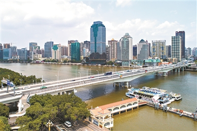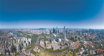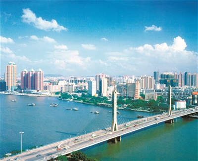 藍天白云下,一座座跨江大橋將珠江兩岸連為一體