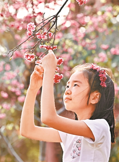 2月20日,華南農(nóng)業(yè)大學(xué)里的櫻花盛開(kāi),吸引了游客打卡拍照。