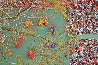 2月20日,春季學(xué)期開(kāi)學(xué)日,小北路小學(xué)應(yīng)元校區(qū)里龍獅游花海。