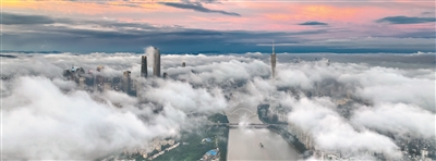 夏日的廣州雨水充沛,大雨過后,天邊出現(xiàn)壯美的晚霞,羊城掩隱在云霧中,宛若仙境。