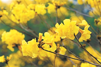 三月天,臨江大道觀“風(fēng)鈴”。臨江大道上黃花風(fēng)鈴木滿枝頭掛滿金黃色的花朵, 是當(dāng)月的“花仙子”。