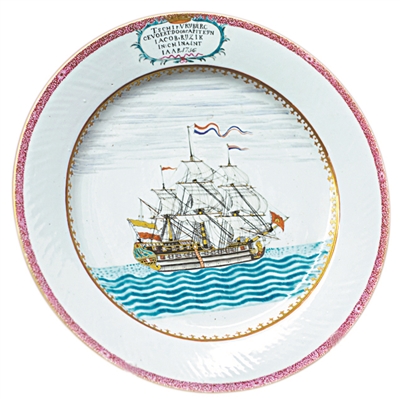 繪有遠(yuǎn)洋帆船圖案的清代外銷瓷器。