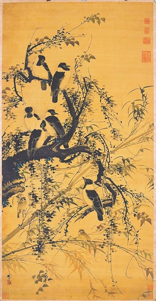 【明】林良《秋樹聚禽圖軸》