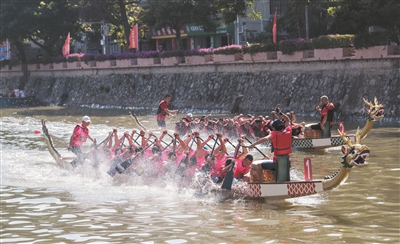 車陂龍舟景,是廣州市天河區車陂村以龍舟為主題、以各村之間相互交流為核心的端午節俗。車陂村龍舟景保存了包括起龍、采青、賽龍、招應景等完整的程式和龍舟飯、龍舟餅、龍舟戲等內容。其中五月初三車陂“招景”日,200余艘各村龍舟到車陂村來拜訪探親,以龍會友,熱鬧非凡,體現了龍舟文化與宗族觀念的緊密融合。