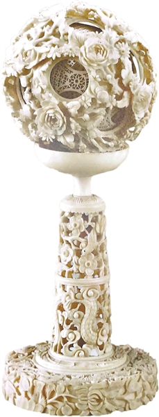 宋元時期,廣州工匠已掌握玲瓏剔透的鏤空通雕技法,被譽(yù)為“鬼工球”的象牙球問世。
