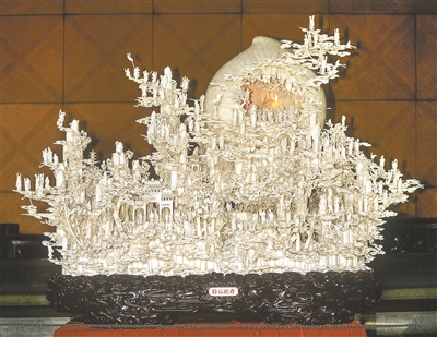 2010年上海世博會“廣東周”,中國工藝美術(shù)大師李定寧的作品《盛世乾坤》——以多達(dá)57層的牙球,直徑只有17厘米,再度展示了廣州牙雕技藝的登峰造極。“要讓一個20層的牙球‘活’起來,至少得花費(fèi)一年時間,每一步都是精工細(xì)作。”李定寧對記者這樣說。