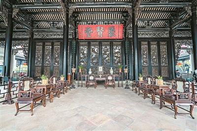 陳家祠是品味嶺南建筑裝飾木雕的最佳去處。記者從陳家祠地鐵站D出口一出來,便看見“古詞流芳”的牌坊,不遠處正是雕龍畫棟、古色古香的陳家祠。