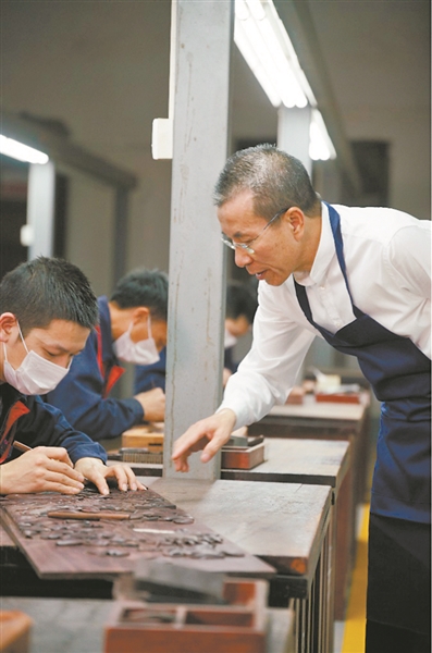 5月,記者來到別具嶺南園林建筑風格的永華藝術館,在雕刻現場,陳達強正帶領學徒們雕刻家具,各色木雕工具一字排開,工匠們一刀刀地刻,一聲聲地鑿……