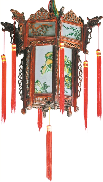 宮燈在中國流傳很廣,制作精細裝飾考究的宮燈,除去照明外,還代表著奢華富貴的皇家氣派。廣式紅木宮燈起源于明朝,至今已有六百年的歷史,由廣州的宮燈藝人首創,“廣式”之名由此而來,同時廣式紅木宮燈被列為貢品。廣式紅木宮燈將廣作木雕工藝、玻璃制作工藝和嶺南繪畫糅合起來,是廣州木雕的重要分支,也是廣東省一項集實用性和藝術性于一體的民間手工技藝,可謂最高檔的“廣貨”之一。