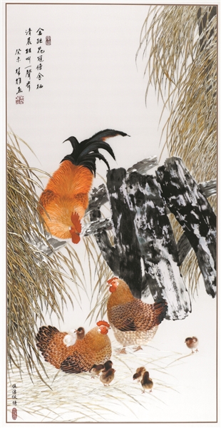 廣繡作品 《我愛小雞群》