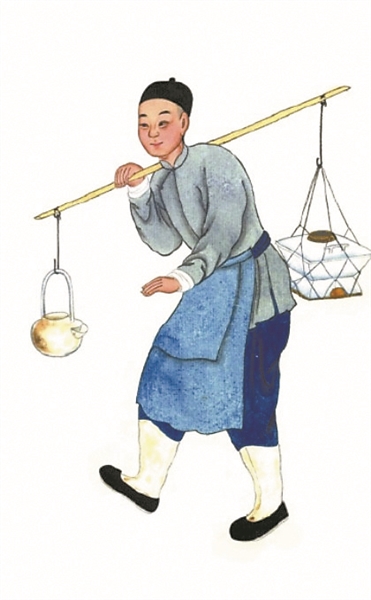 清代外銷畫里的小販,肩上挑著的器皿里裝著熱乎乎的湯汁