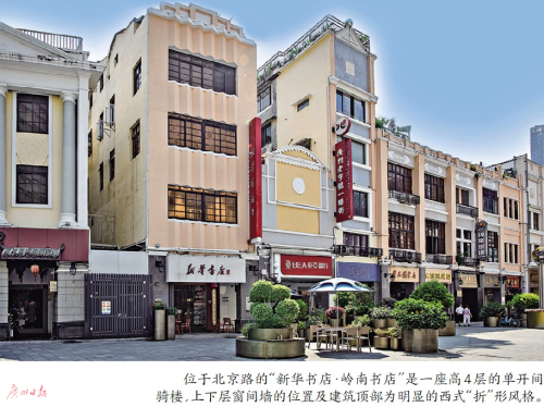 北京路336號(hào)新華科技書店騎樓,是商務(wù)印書館廣州分館舊址,其特點(diǎn)是以強(qiáng)烈的垂直線條和拉長(zhǎng)的拱形窗表現(xiàn)明顯的哥特裝飾意味。該建筑由著名建筑設(shè)計(jì)師楊錫宗設(shè)計(jì)