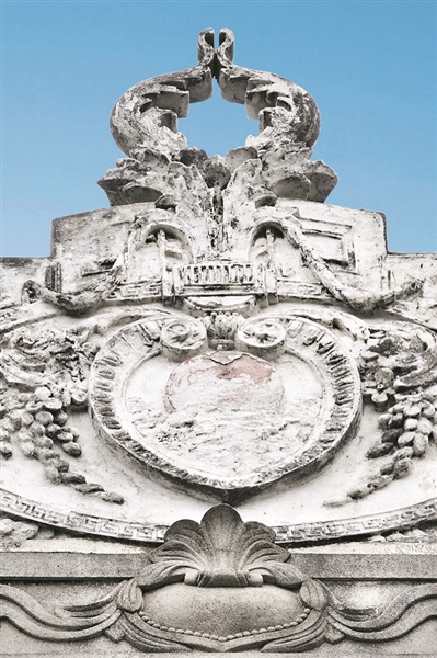廣州恩寧路的一棟騎樓屋檐上以“羊”為元素的石雕裝飾
