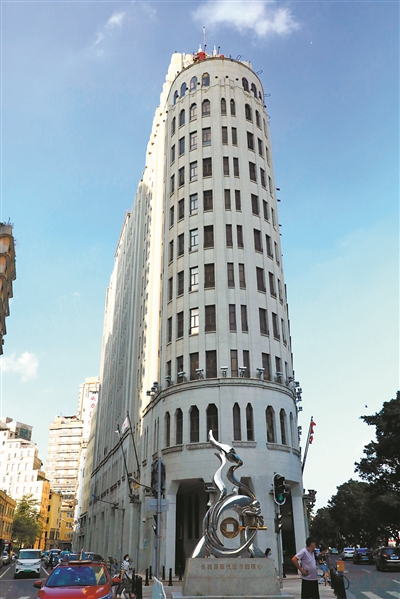 20世紀(jì)二十年代末,廣州長(zhǎng)堤一帶已是寸土寸金。此時(shí),海珠石被填埋后,修筑了約1160米長(zhǎng)的新堤大馬路(今沿江西路),并在海珠島與長(zhǎng)堤大馬路之間的河灘上填出一塊平地,叫新填地。1934年,愛國(guó)華僑陳卓平把愛群大廈建在新填地西端靠近太平南路的三角形地帶。三年之后,愛群大廈建成,高64米、共15層,既吸收了西方建筑藝術(shù)風(fēng)格,又保留了嶺南建筑藝術(shù)特色,外觀設(shè)計(jì)采用垂直線條的手法,整體布局則以沿街周邊布置的方式,使10層以下的平面成鈍三角形,中間留通天采光,11層后才向西邊的鈍角部分收束成五邊形,15層以上則以寶冠狀的形式為頂。此后30年,愛群大廈雄踞廣州第一高樓之位,如一艘巨輪,乘風(fēng)破浪。