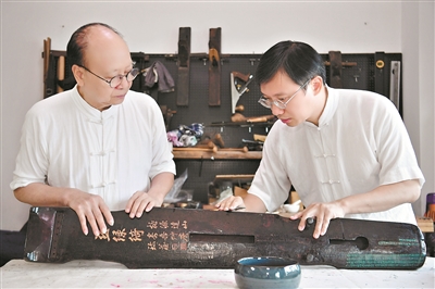 兒子區(qū)宏山(右)跟隨父親學(xué)習(xí)琴藝、斫琴和修琴
