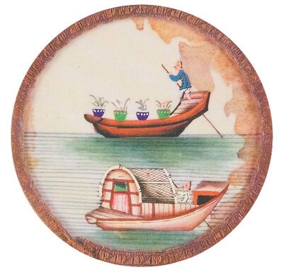 以船渡花的小販(圖片出自《西方人眼里的中國情調(diào):伊凡·威廉斯捐贈十九世紀(jì)廣州外銷通草紙水彩畫》)