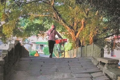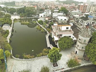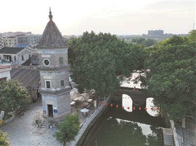 日前,記者來到位于番禺區(qū)石樓鎮(zhèn)西北面的大嶺村尋訪。穿過一棟棟現(xiàn)代廠房,寬闊的瀝青路已鋪至村口。不過,當(dāng)記者步入村街,沿著清澈的玉帶河信步前行,景觀就為之一變,一幅小橋流水之畫卷在眼前徐徐展開,晚霞燦燦,歷經(jīng)滄桑的古塔古橋訴說著大嶺村的悠久歷史。