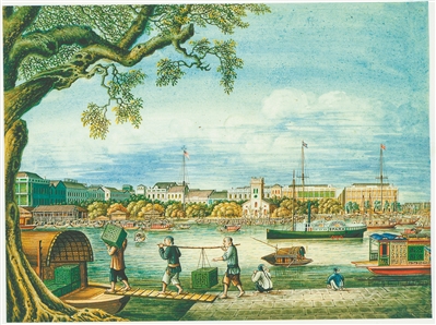 洋船爭出是官商,十字門開向二洋。五絲八絲廣緞好,銀錢堆滿十三行。——清·廣州竹枝詞