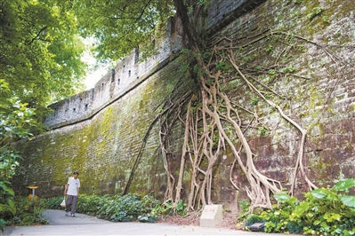 大樹扎根在明古城墻上,歲月留下的痕跡一覽無遺。