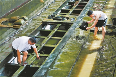 龍船“起來”后,還要清淤泥,檢查船身