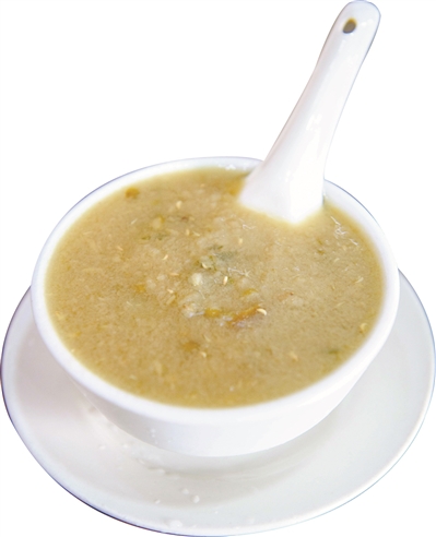 代表有芝麻糊、杏仁糊、核桃糊等。在攪拌機沒普及前,做一碗芝麻糊相當費力氣。首先需要將材料浸泡、炒熟,然后在砂盆里放入材料,逐漸加水,用擂漿棍手工一點點研磨成糊。
