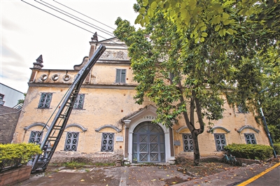 協(xié)同和機(jī)器廠位于芳村大道東,占地面積約1.4萬平方米。記者走進(jìn)廠區(qū)舊址,可見歷經(jīng)百年風(fēng)雨后,協(xié)同和機(jī)器廠當(dāng)年的主要廠房依然“健在”。廠房1座、倉庫1座和吊機(jī)、水塔、車床等設(shè)備,屹立至今。